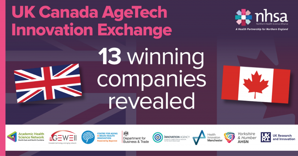 The programme is funded is funded by the UKRI Healthy Ageing Challenge, delivered by Innovate UK and ESRC and led by the Northern Health Science Alliance (NHSA) with the following partners: Department for Business & Trade; the four northern Academic Health Science Networks (AHSNs) from the UK – Health Innovation Manchester, Yorkshire and Humber AHSN, Innovation Agency (North West Coast AHSN), AHSN for the North East and North Cumbria; and AGE-WELL and Centre for Aging + Brain Health Innovation (CABHI) from Canada.